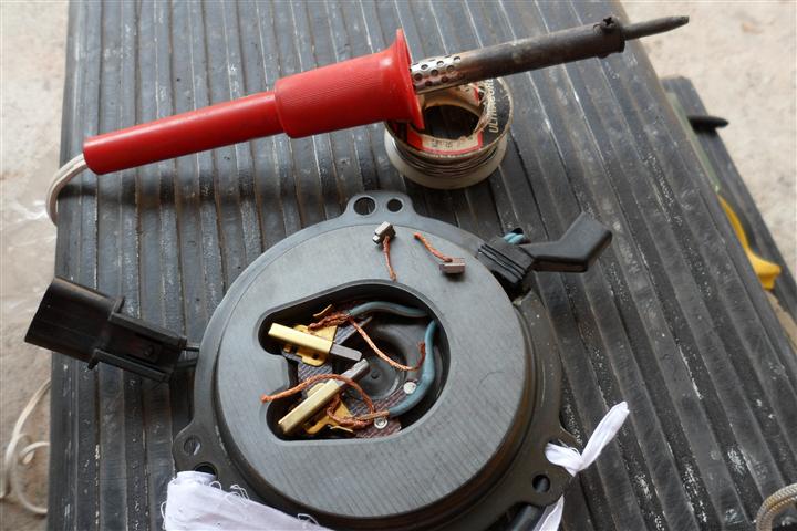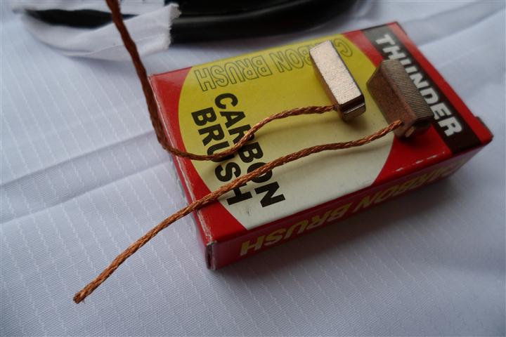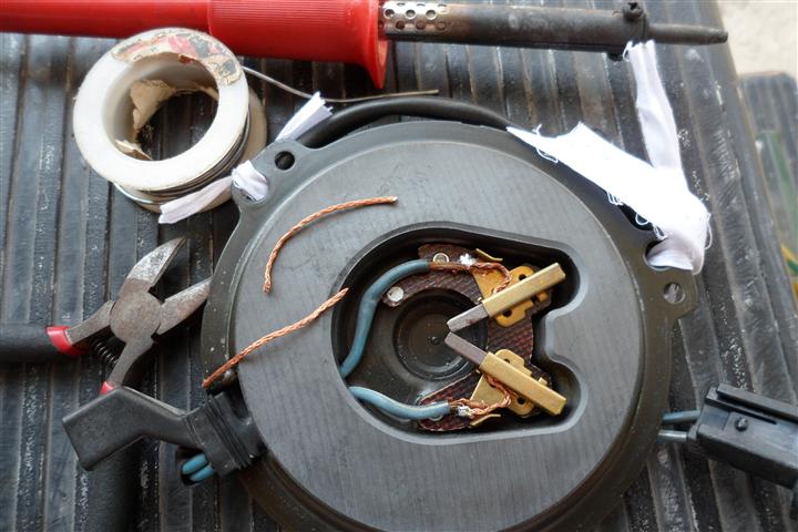 ตัดแปรงถ่านตัวเก่าออก เอาตัวใหม่ใส่เข้าไปเตรียมบัดกรีครับ สายไฟอย่าให้สั้นหรือยาวเกินไปนะครับ