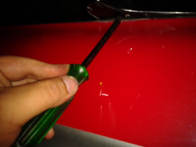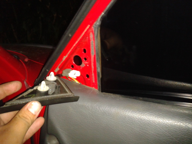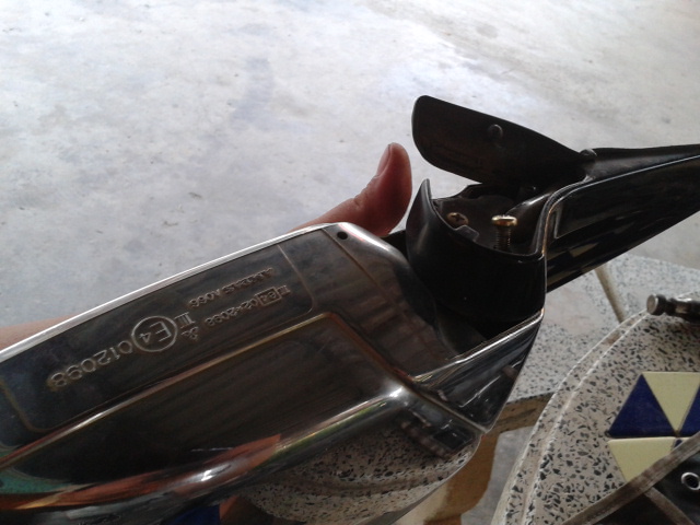 เมื่อถอดกระจกข้างออกมาได้แล้ว ก็ถอดฝาครอบออกมา ฝาครอบจะมีน็อตอยู่ 1 ตัว ตัวที่มันคลายไม่ออก เพราะมันติดเหลี่ยมประตูงัย คลายมันออกมาดังในรูป