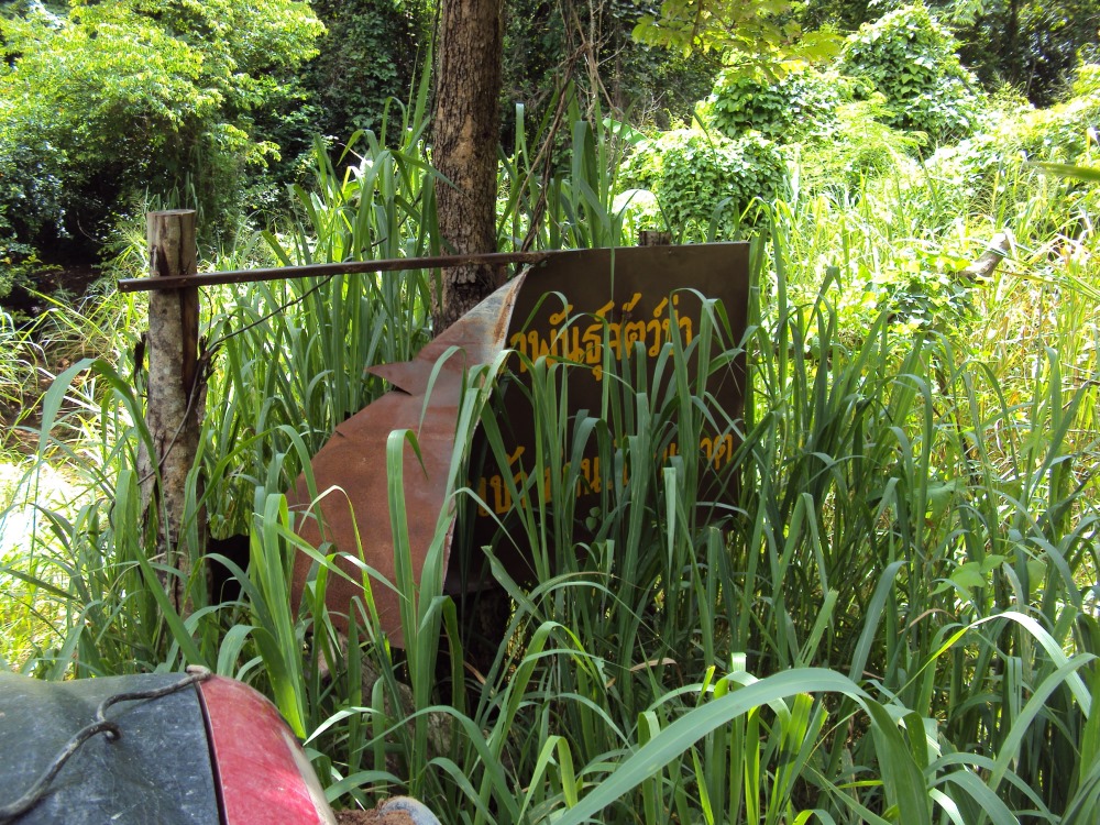 พอจะเลี้ยวซ้ายขึ้นเนินรากไม้ก็เจอป้ายนี้ครับ ไม่ทราบว่าเขียนว่าอะไร