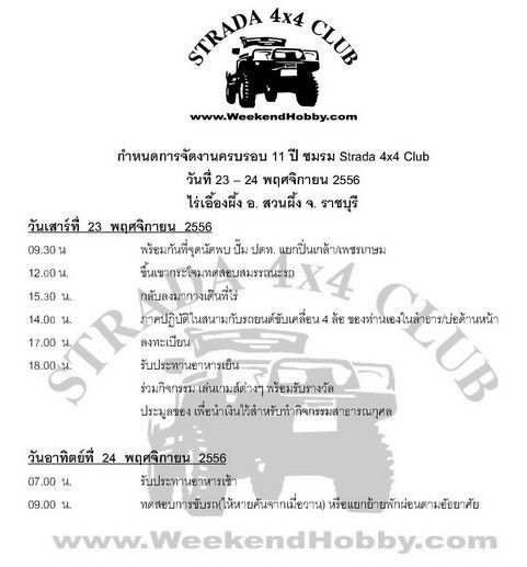 กำหนดการเดินทางไปงานครบรอบ 11 ชมรม Strada 4x4 Club