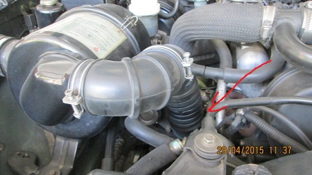2. บริเวณท่อเฟลค ที่ออกจากกรองอากาศบริเวณลูกศรชี้มีคลาบน้ำมันเครื่องเยิ้ม