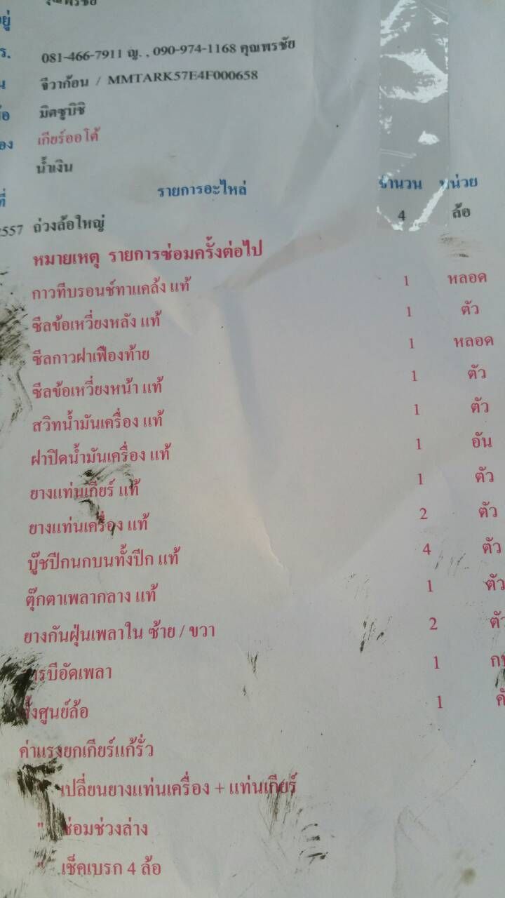 ผมเคยเอารถเข้าซ่อมที่ศูนย์ MITSUBISHI จ.นนทบุรี ช่างมันบอกว่าไม่รู้ว่าจะมีอะไหล่เปลี่ยนให้รึเปล่า โคตรเซ็งเลยครับท่าน ขนาดเข้าศูนย์ น๊ะ ดูมันตอบ