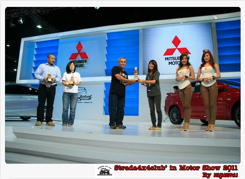 และที่สำคัญขอขอบคุณบ.มิตซูบิชิมอเตอร์ฯประเทศไทย ที่สนับสนุนบัตรเข้าร่วมงานพร้อมทั้งอำนวยความสะดวกในเรื่องของเวที ซึ่งให้น้องเจิลมอบถ้วยและเหรียญรางวัลการแข่งขันรถออฟโรด ในงานครบรอบ8ปีStrada4x4club ให้กับพวกเราทุกๆคน ขอขอบคุณมากครับ