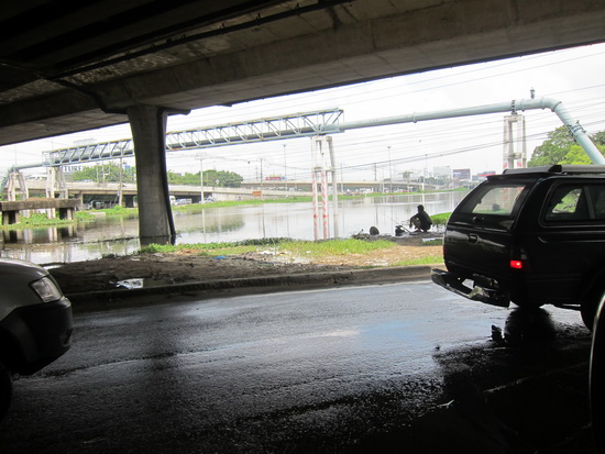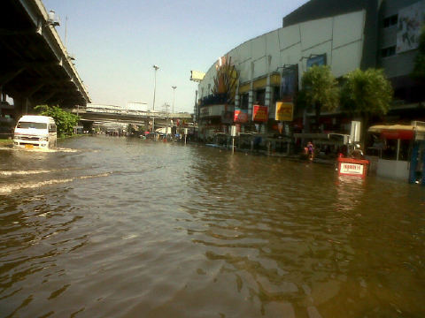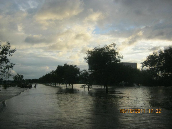 ย่านสี่มุมเมือง รังสิต....ช่วงนี้ต้องระมัดระวังอยู่ จุดกลับรถสะพานแก้วน้ำจากคลองรังสิตล้นมาไม่มากนัก