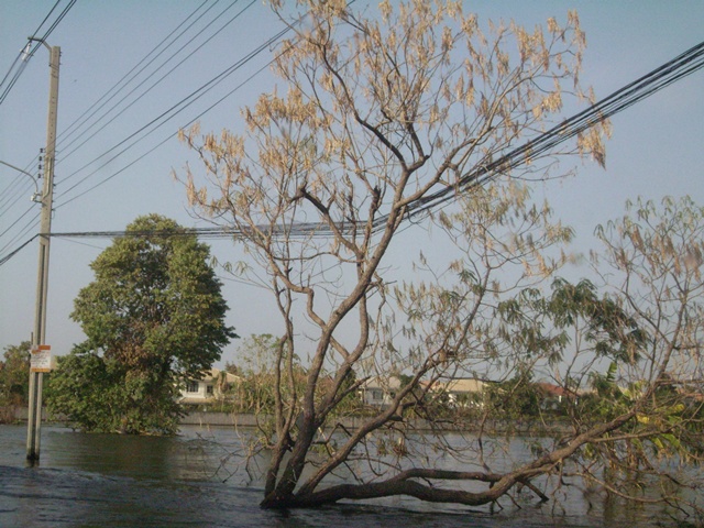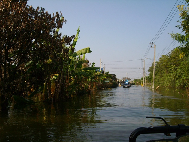 ถนนกลายเป็นคลอง ด้านขวาถ้าก็คลองถ้าจำไม่ผิดน่าจะเป็นคลองบางไทร บ้านพี่เสือคาบดาบน่าจะอยู่แถวๆนี้
