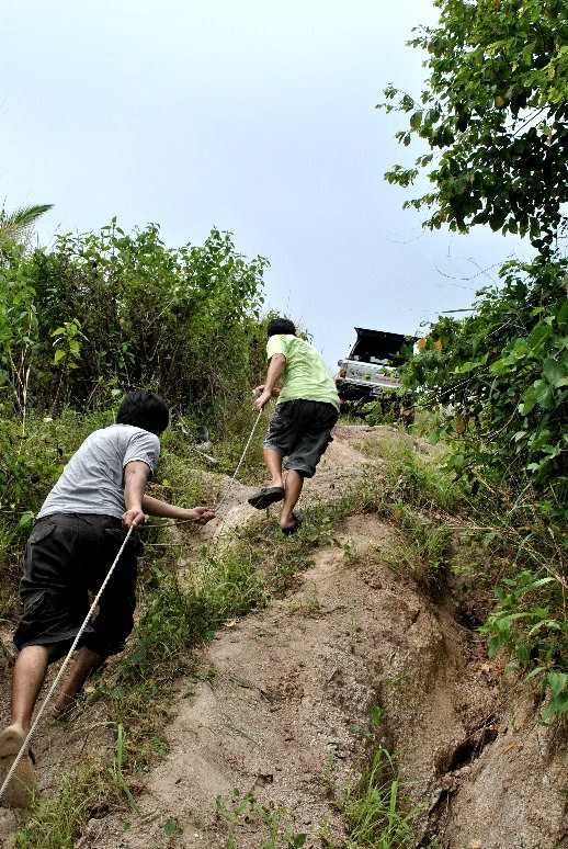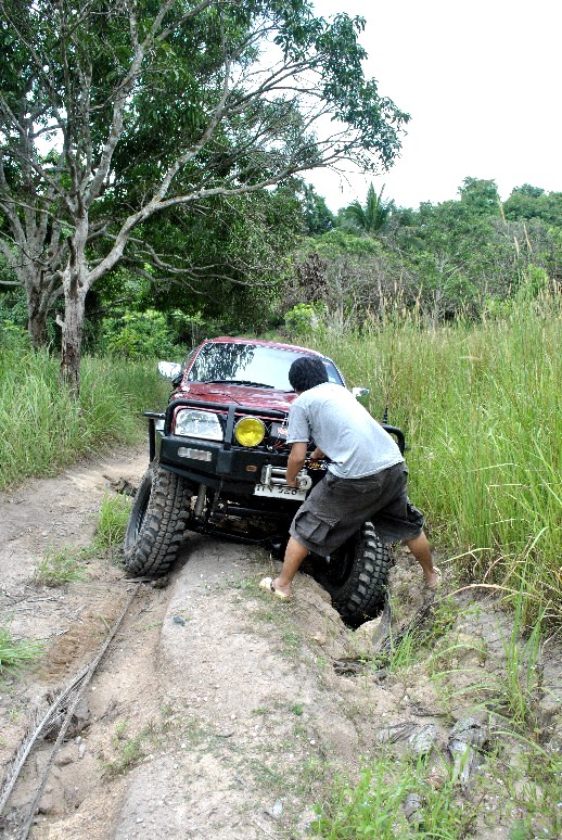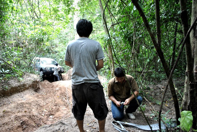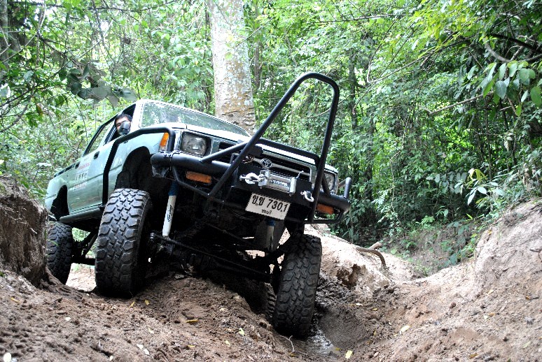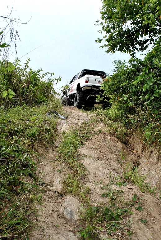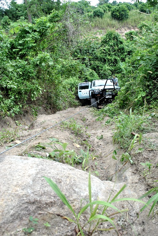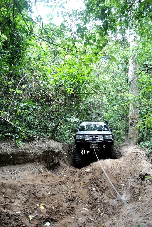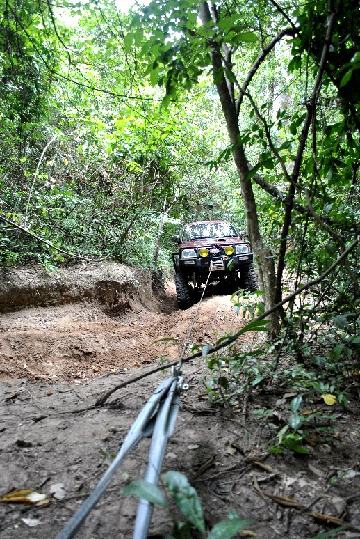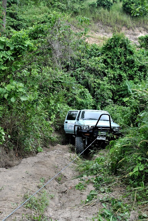 ออกจากเนินรากไม้ ก็วิ่งตามกันมาดีๆ ลงร่องซะนี่ แขวนหน้าหลัง ถึงขนาดต้องวินช์ อีกรอบ ผ่านไปได้ด้วยดี