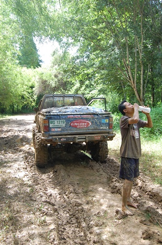ผ่านไปได้อีกคันนึง เนว์ก็พักดื่มน้ำอีกรอบ