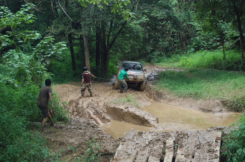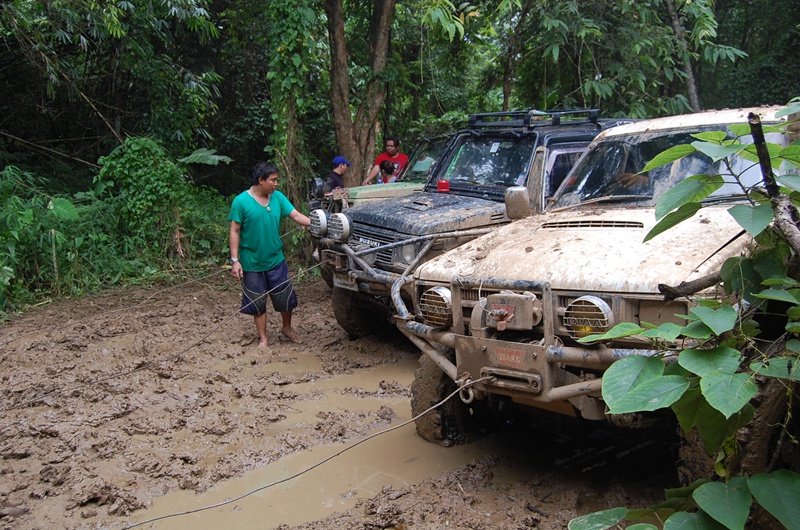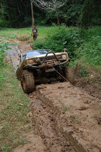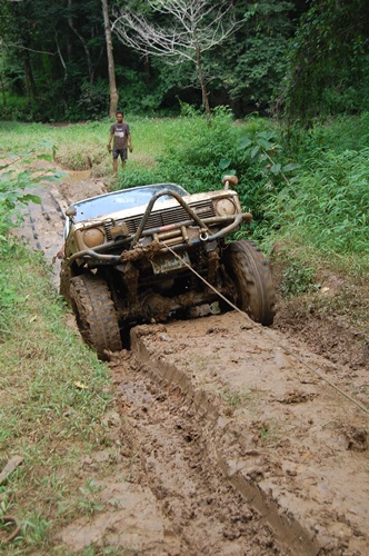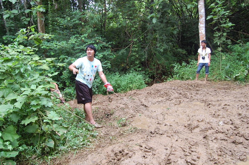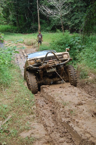 สุดท้ายลากสลิงจาก บ้ากระโดด ไปดึงตูดกลับ ดีที่มีสลิงเปล่าไปร่วม15 เมตร กับเชือกลากอีก3-4 เส้น