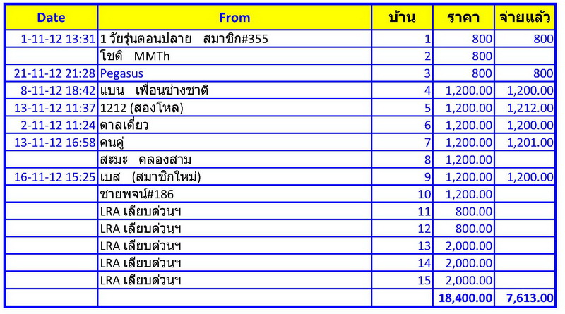 ห้องเบอร์ 9 เบส (สมาชิกใหม่)..…………….1200---------- โอนแล้ว