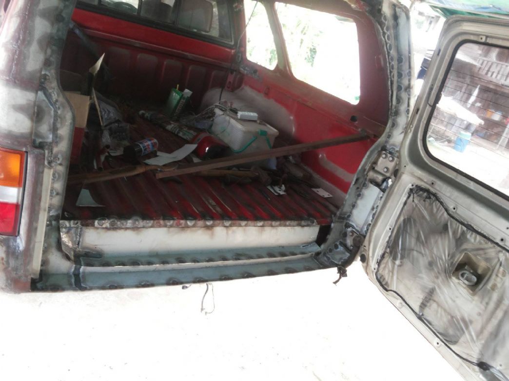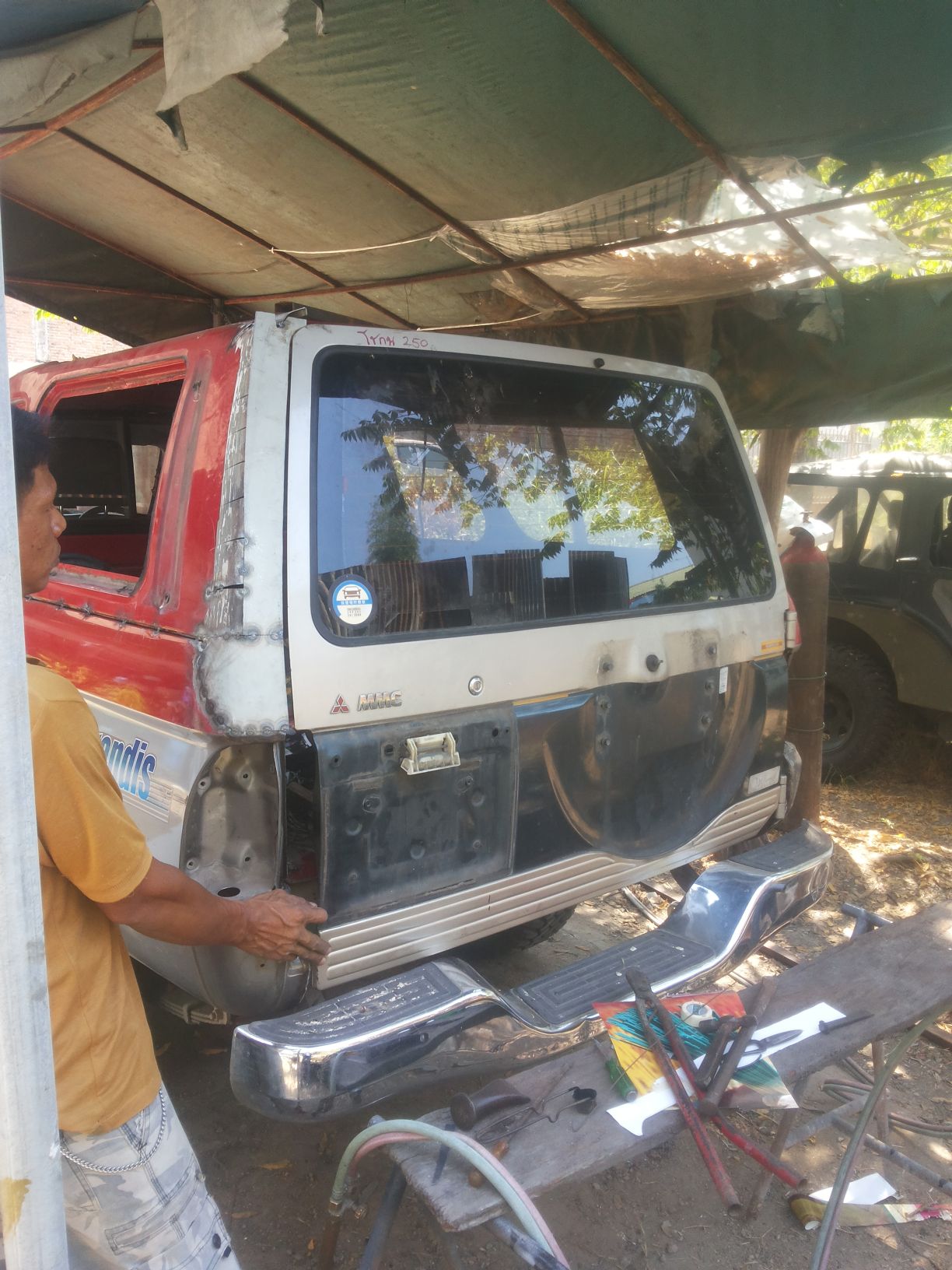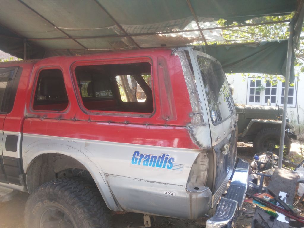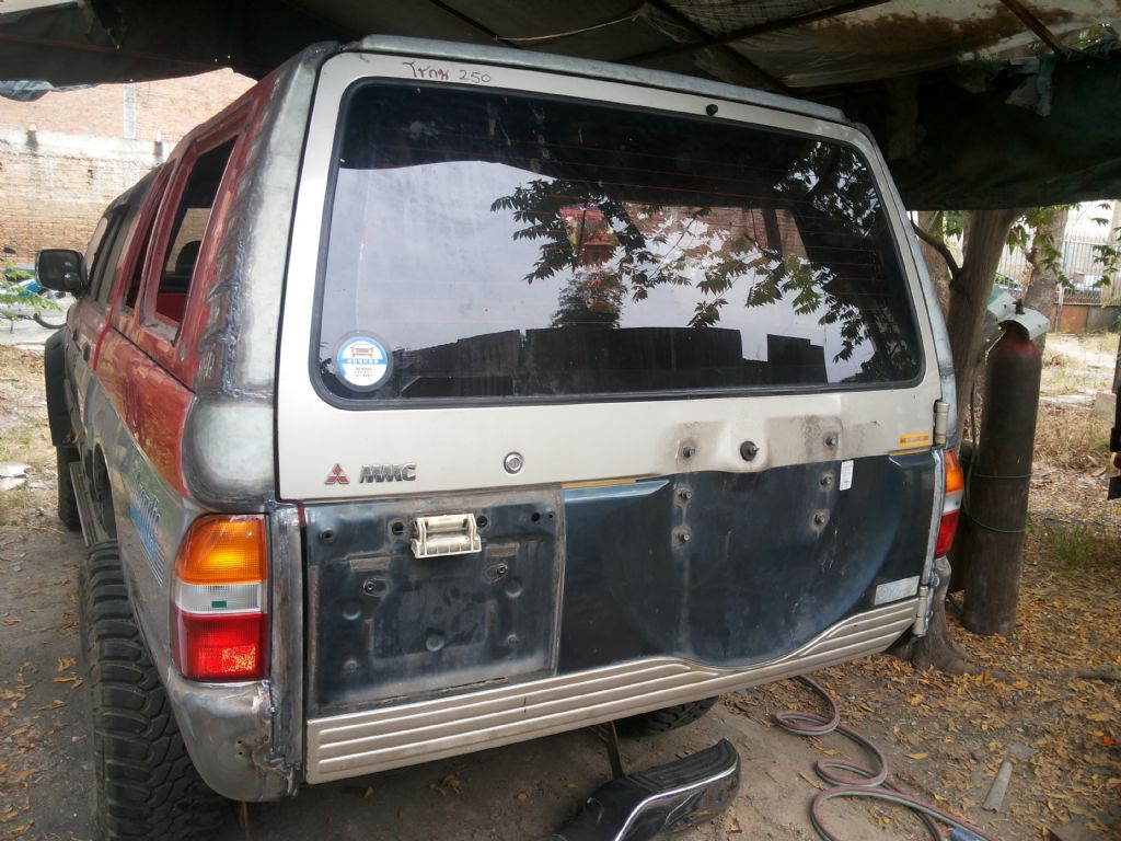 ผมคงโดนตั้งคำถามถึงความคุ้มค่า ว่าทำไมไม่ขายรถคันนี้แล้วออก G wagon ถ้าต้องการใช้งานพื้นที่แบบแวน แต่เชื่อว่าหลายคนคงรู้สึกแบบเดียวกับผมรถคันที่เราเคยไปไหนไปกัน ขึ้นเขาลงห้วย ร่วมทุกข์สุขกันมาตลอด แม้มันจะกินจุ ค่าดูแลก็เอาเรื่องอยู่ แต่ผมตัดใจขายไม่ลง เลยผุดโปรเจคปรับใหญ่ เพื่อใช้งานไปนานๆโดยความหล่อไม่น้อยหน้ารุ่นใหม่ๆที่ออกมากัน เริ่มจากฝาท้ายบ้านผมอยู่กันหลายคน ใน1ปีมีอยู่อย่างน้อยครั้งๆสองครั้งที่ครอบครัวจะออกไปพักผ่อนต่างจังหวัด ปัญหาคือขบวนผู้สูงอายุบางส่วนที่ต้องนั่งหลังปีนขึ้นหลังกระบะไม่ได้เพราะฝาท้ายบังกันชนเลยไม่มีที่เหยียบขึ้น บานท้ายปาเจโร่โชกุน เป็นเป้าหมายที่ผมเลือก เอามาเจอกับหลังคาเหล็กเดิมของสามมิตร