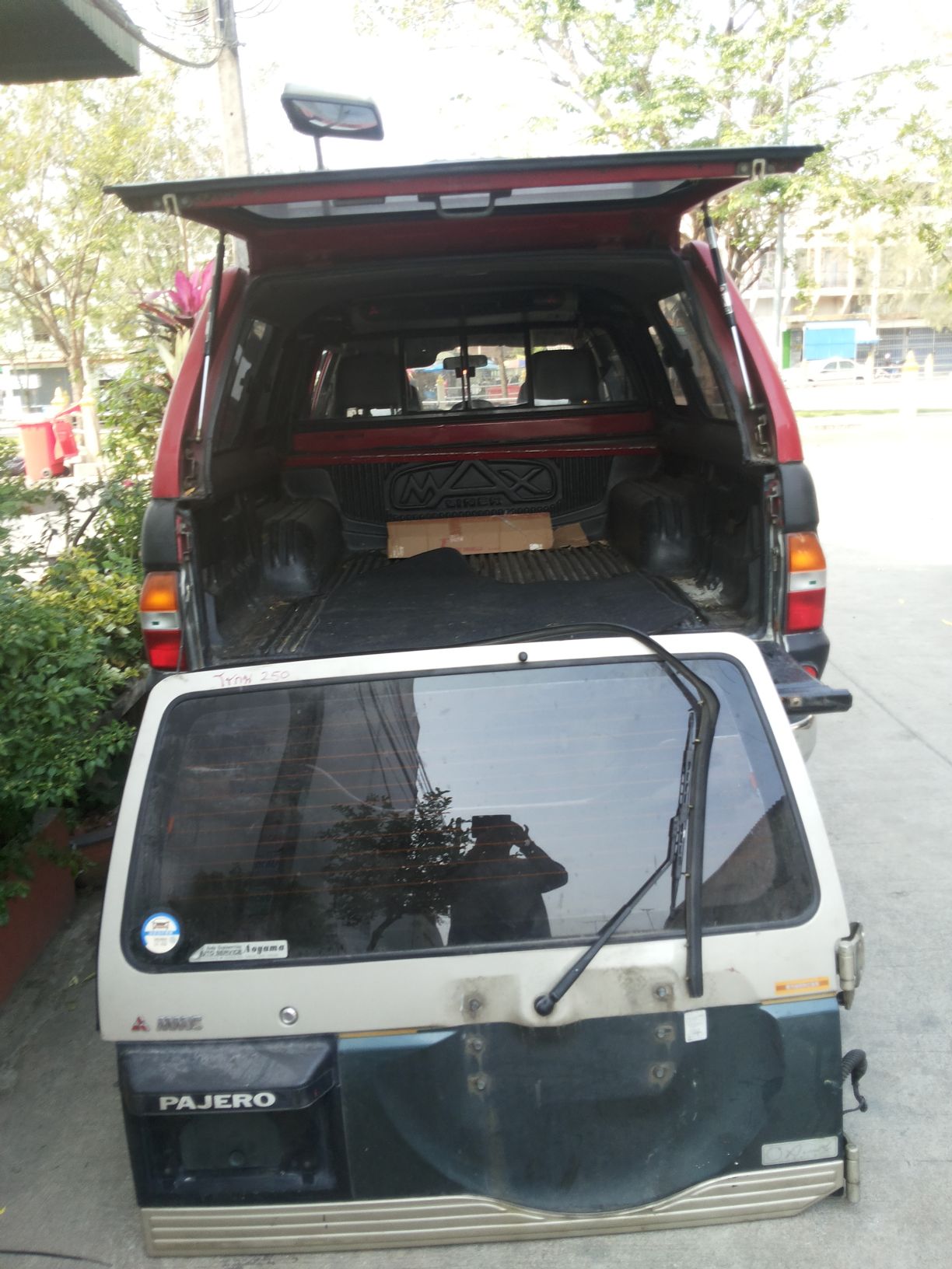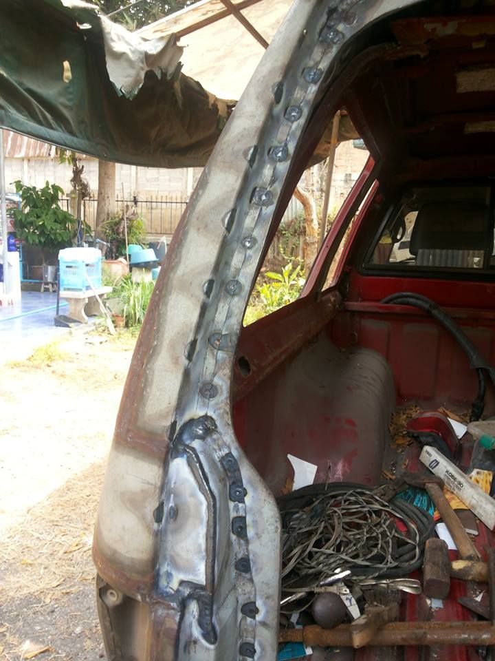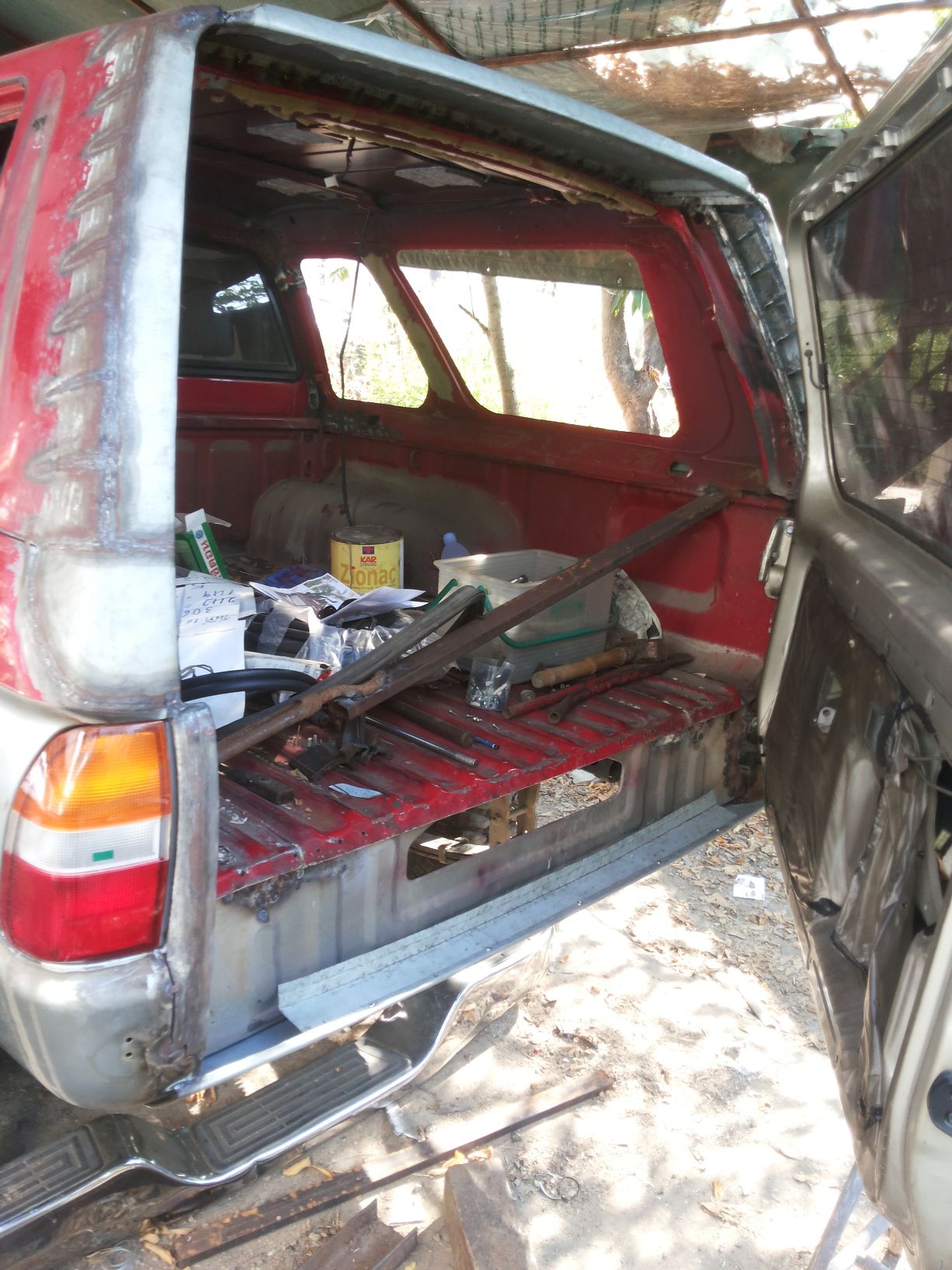ผมคงโดนตั้งคำถามถึงความคุ้มค่า ว่าทำไมไม่ขายรถคันนี้แล้วออก G wagon ถ้าต้องการใช้งานพื้นที่แบบแวน แต่เชื่อว่าหลายคนคงรู้สึกแบบเดียวกับผมรถคันที่เราเคยไปไหนไปกัน ขึ้นเขาลงห้วย ร่วมทุกข์สุขกันมาตลอด แม้มันจะกินจุ ค่าดูแลก็เอาเรื่องอยู่ แต่ผมตัดใจขายไม่ลง เลยผุดโปรเจคปรับใหญ่ เพื่อใช้งานไปนานๆโดยความหล่อไม่น้อยหน้ารุ่นใหม่ๆที่ออกมากัน เริ่มจากฝาท้ายบ้านผมอยู่กันหลายคน ใน1ปีมีอยู่อย่างน้อยครั้งๆสองครั้งที่ครอบครัวจะออกไปพักผ่อนต่างจังหวัด ปัญหาคือขบวนผู้สูงอายุบางส่วนที่ต้องนั่งหลังปีนขึ้นหลังกระบะไม่ได้เพราะฝาท้ายบังกันชนเลยไม่มีที่เหยียบขึ้น บานท้ายปาเจโร่โชกุน เป็นเป้าหมายที่ผมเลือก เอามาเจอกับหลังคาเหล็กเดิมของสามมิตร
