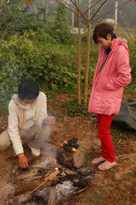 หนาวครับ แปดโมงเช้าแล้ว ยังต้องก่อไฟผิง พี่ไก่บอกไม่ไหว
