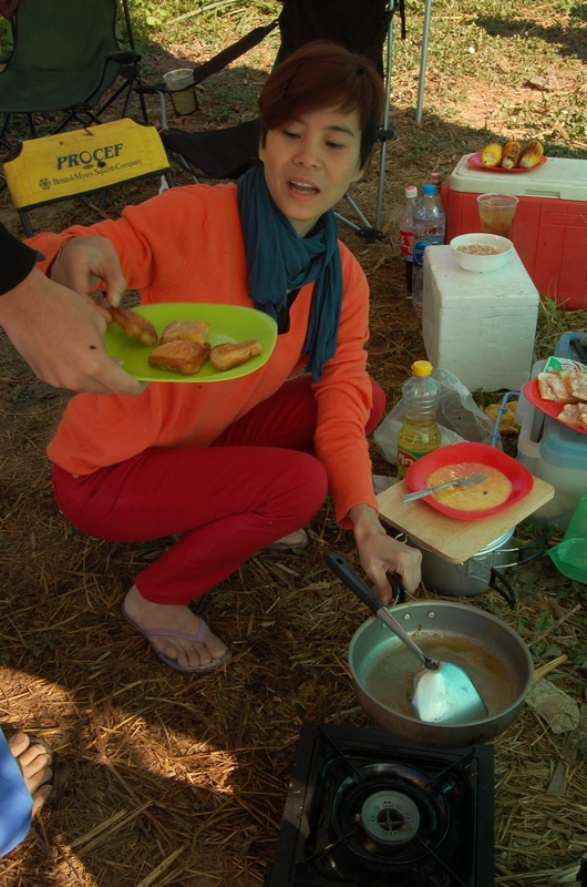เช้าตื่นประมาณ เจ็ดโมง ออกจากเต้นท์มา เจอแต่หมอก ไม่รู้จะทำอะไรหนาว เลยนั่งสนทนาพร้อมกับจิบกาแฟกะพี่หนึ่ง
