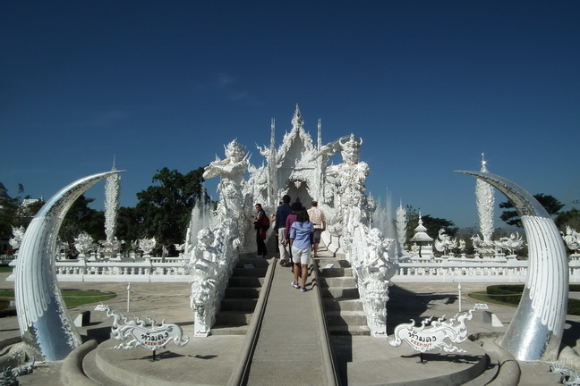 ทางขึ้นโบสก์ครับ เข้าไปในโบสก์เขาห้ายถ่ายรูปเลยไม่มีรูปมาลง ผู้หญิงที่นุ่งสั้นเขาจะมีผ้าขาวให้นุ่งด้วยครับ