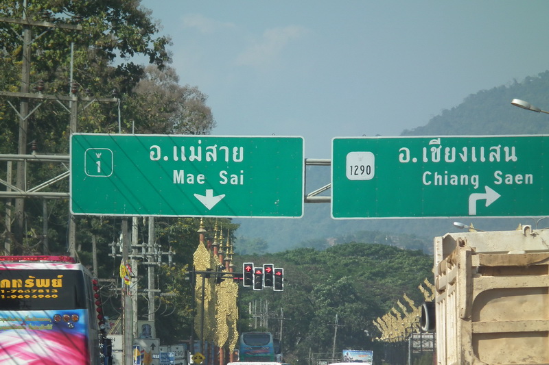 ถึงแล้วครับแม่สาย จริงๆแล้วเราต้องเลี้ยวขวาไปเชียงของตรงนี้แต่ต้องเข้าไปเดินในตลาดแม่สายก่อนครับ