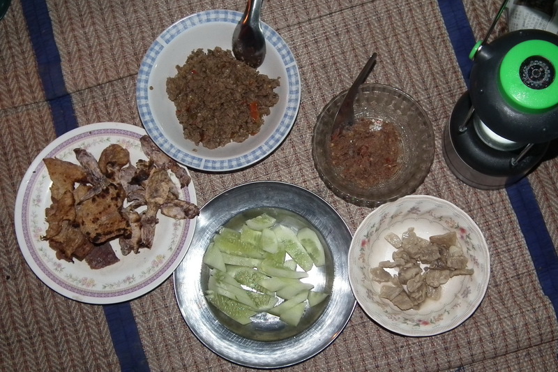 กับข้าวมื้อนี้ครับ ชูโรงด้วยน้ำพริกมะขามที่เตรียมมาจากบ้านกินได้ทุกมื้อ