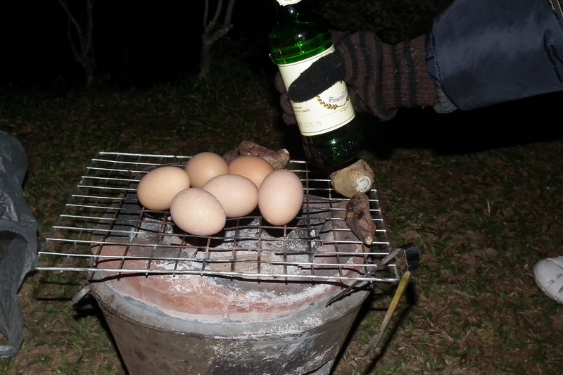 ไข่ปิ้งครับปิ้งไปปิ้งมาระเบิดตูมตามเลยครับเต๊นท์ข้างๆตกใจรีบวิ่งมาดูเลยปลอบขวัญด้วยไข่ระเบิดไป2ใบ