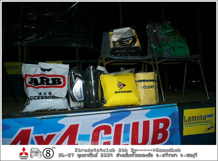 และทั้งนี้ ผมต้องขอขอบคุณ บริษัท มิตซูบิชิ มอเตอร์ส ประเทศไทย, ลามิน่าฟิล์ม, เปี๊ยกระยองออฟโรด, กลุ่มเพื่อนจากเซ็นทรัล บางนา, คุณรุจิโรจน์, MMTH Off Road, เว็บมาสเตอร์ Weekendhobby.com, ARB OFFROAD THAILAND, คุณศร บูรพาออฟโรด, พี่เกียร์แดงและผลิตภัณฑ์SURE, ร้าน COCPIT อ่าวอุดม(ส.อุดมเอก), กลุ่มเพื่อนกันดาร, คุณกบ ประธานชมรมร่มบิน, อู่ เอส ที มอร์เตอร์ (ช่างชาติ), พี่พงษ์+พี่ภัทร, คุณชัยรัตน์ ศรีราชาออฟโรด, บริษัท ทราน เอเชีย รูท จำกัด, พี่ศักด์ ฅนออฟโรด, บอย-หลิน Lady Bug, คุณสงกรานต์ ภาชนะ ประธานชมรมศรีราชาออฟโรด วิน-TAXI4X4 และต้องขออภัยท่านที่ไม่ได้ออกนามในที่นี้ สำหรับการสนับสนุนของรางวัล และที่สำคัญที่สุดคือ เพื่อนๆ พี่ๆ น้องๆ สมาชิกStrada4x4 Club ทุกท่าน ที่ทำให้เกิดกิจกรรมดีๆ แบบนี้ครับ
