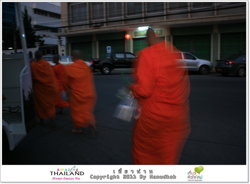 พระ-เณร ต้องรีบเดิน เดี๋ยวคนที่รอใส่บาตรจะรอนาน