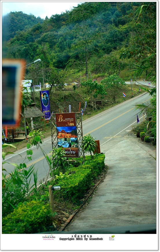 ป่ะพี่พงษ์ผมพร้อมแล้ว ว่าแล้วพี่พงษ์ก็ขับรถต่อไป.....55 วิ่งเรื่อยๆแบบไม่รีบ มีบางช่วงทำถนนต้องระมัดระวังเป็นพิเศษหน่อย เราก็นั่งรถไปคุยนู้นคุยนี่ เรื่องนู้นที เรื่องนั้นทีกันเรื่อยเปื่อย ตลอดระยะเวลาการเดินทาง จนเข้าสู่เขต จ.น่าน เรามองหาโลตัส เพราะที่ๆเราจะพักอยู่แถวๆนั้น สักพักเราก็เจอโลตัส เราก็จะเห็นทางเข้ารีสอร์ท