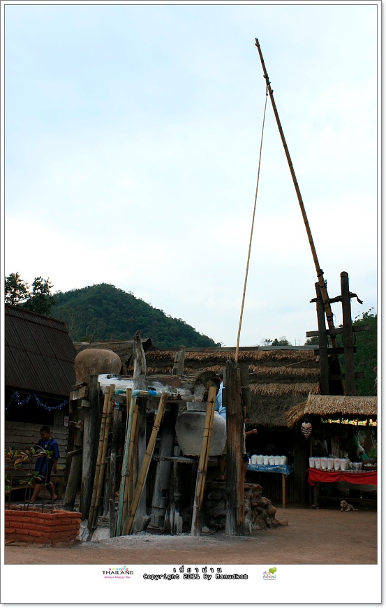 เค้าจะใช้ถังหย่อนลงไปในบ่อดดยผุกติดกับไม้ไผ่ แล้วหย่อนลงไง.....พอถึงก้นบ่อแล้วก็จะดึงเชือกขึ้นมาครับ