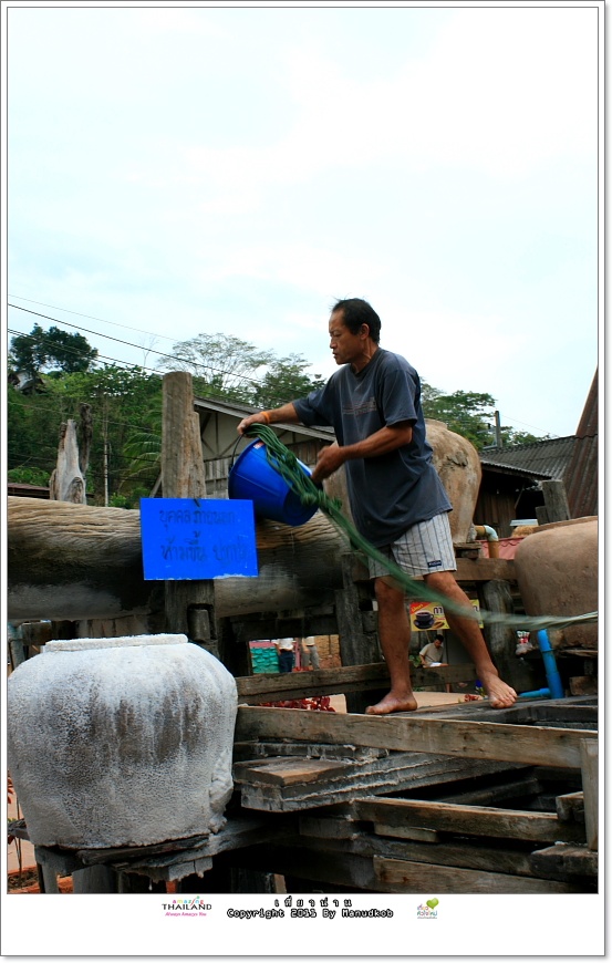 หลังจากได้น้ำมาแล้วก็จะเทใส่โอ่งน้ำ แล้วจึงเอาน้ำไปใช้ทำเกลือครับ