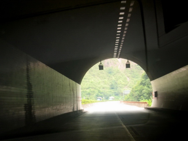 เริ่มออกเดินทางไปตามเส้นทางด่วนที่เพิ่งเปิดบริการ ระหว่างทางจะลอดอุโมงค์สั้นๆ 20 อุโมงค์