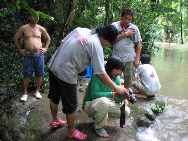 หลังจากไปชมลำน้ำเข็ก บริเวณเหนือแก่งหิมาลัยกันแล้ว เนื่องจากบริเวณนั้นน้ำลงเล่นไม่ได้ ทั้งขุ่น เชี่ยว แก่งหินเยอะ ลึก แล้วบริเวณที่เราจะตั้งแค้มป์พักก้ออยู่ใกล้ลำน้ำเกินไป อันตรายจากน้ำป่าหากเกิดฝนตกหนัก เราจึงเปลี่ยนใจหันหลังออกกลับมานอนพักเล่นน้ำที่น้ำตกเพชรในไพร