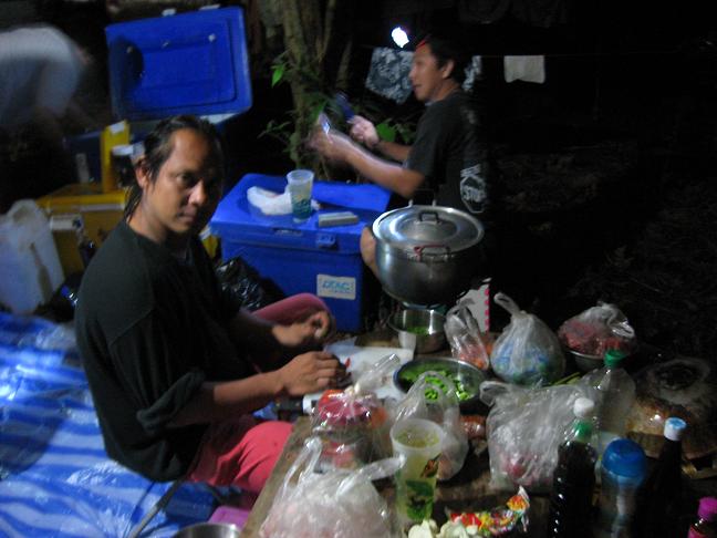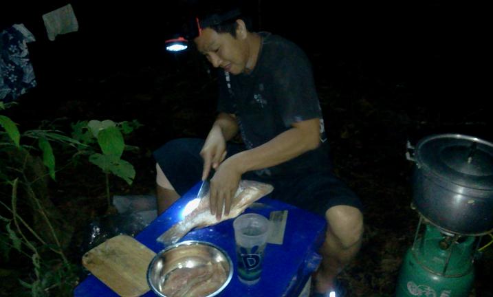 ขอเท้าความวันออกเดินทาง ออกจากอู่ชาติพร้อมกัน 2คันประมาณ 2ทุ่ม มีพี่นุ+de boy กับ พี่ต้อง+ชาติ ไปนัดเจอกับป๋าหงบ(พี่หนุ่ม ลำลูกกา) อีก 1คัน และที่ตามมาห่างๆเพราะมัวแต่หาซื้อเบียร์ข้างทางอยู่ คือ Nott+Holl ณ ศีชา ที่มาด้วยกัน พอครบแล้วก้อรีบบึ่งจุดหมายทันที โดยมี "พี่อ้อ" Trip leader และ ที่สำมะคัญยิ่ง "ละอ่อน" ที่ตีรถมาจากร้อยเอ็ดไปรออยู่บนเขาค้อแล้ว...ไปถึงเขาค้อเช้ามืด แวะตลาดสดจัดเสบียงขึ้นรถก่อนขึ้นไปนั่งผึ่งพุงรอพระอาทิตขึ้น...เมื่อเจอกันครบแล้ว ร่วมกัน Breakfast ก่อนเข้าวัดเพื่อร่วกันทำบุญถวายเทียน และสังฆทานก่อนออกตะลุยป่าหิมาลัย ต้นน้ำ "ลำน้ำเข็ก"...
