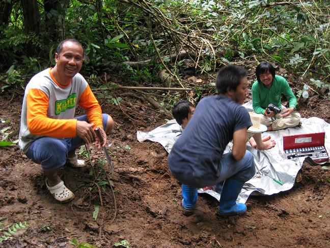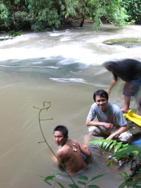 ขอเท้าความวันออกเดินทาง ออกจากอู่ชาติพร้อมกัน 2คันประมาณ 2ทุ่ม มีพี่นุ+de boy กับ พี่ต้อง+ชาติ ไปนัดเจอกับป๋าหงบ(พี่หนุ่ม ลำลูกกา) อีก 1คัน และที่ตามมาห่างๆเพราะมัวแต่หาซื้อเบียร์ข้างทางอยู่ คือ Nott+Holl ณ ศีชา ที่มาด้วยกัน พอครบแล้วก้อรีบบึ่งจุดหมายทันที โดยมี "พี่อ้อ" Trip leader และ ที่สำมะคัญยิ่ง "ละอ่อน" ที่ตีรถมาจากร้อยเอ็ดไปรออยู่บนเขาค้อแล้ว...ไปถึงเขาค้อเช้ามืด แวะตลาดสดจัดเสบียงขึ้นรถก่อนขึ้นไปนั่งผึ่งพุงรอพระอาทิตขึ้น...เมื่อเจอกันครบแล้ว ร่วมกัน Breakfast ก่อนเข้าวัดเพื่อร่วกันทำบุญถวายเทียน และสังฆทานก่อนออกตะลุยป่าหิมาลัย ต้นน้ำ "ลำน้ำเข็ก"...