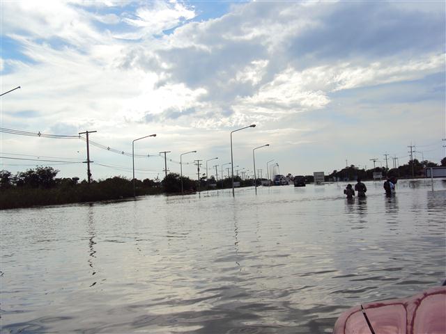 ลักษณะบรรยากาศระหว่างทางสายเอเซีย ก่อนถึงบางปะหันจะมีกลุ่มของชาวบ้านที่ได้รับความเดือดร้อน