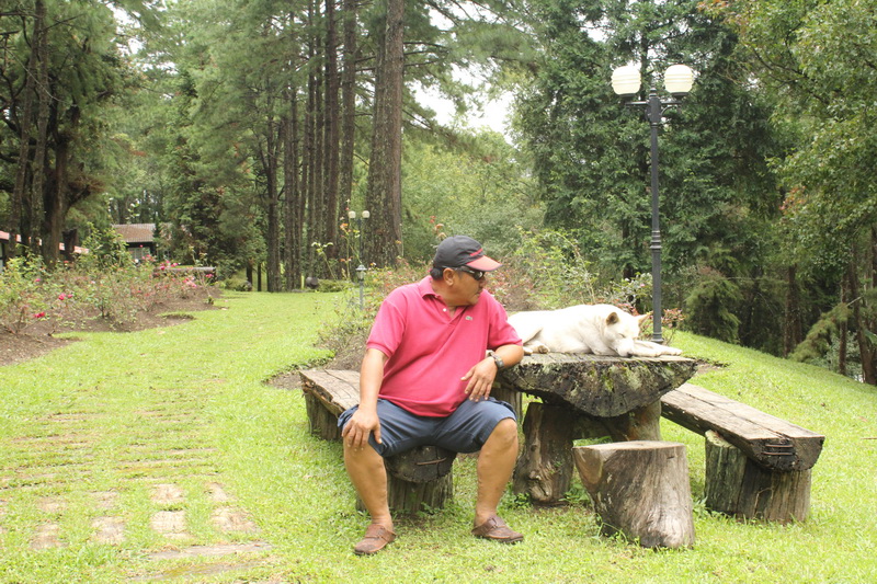 เหนื่อยกับท่าถ่ายรูปเข่าพังเมื่อกี้ เลยมานั่งพักกับเจ้าถิ่น
