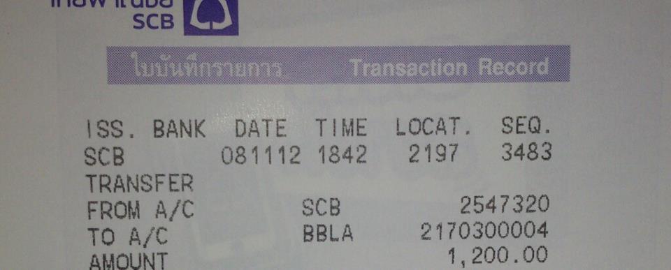 โอนค่าที่พัก ๑,๒๐๐ บาท เข้าบัญชีเรียบร้อยแล้วนะครับ