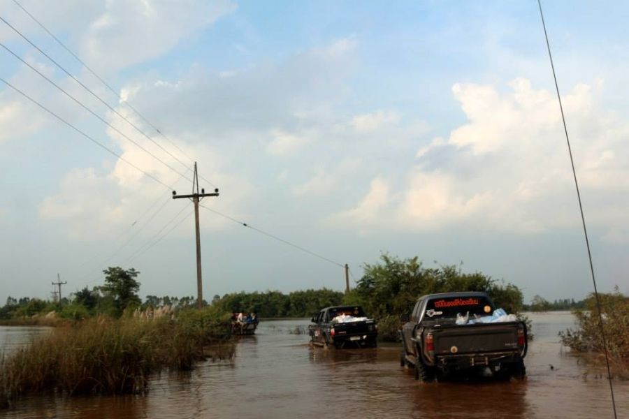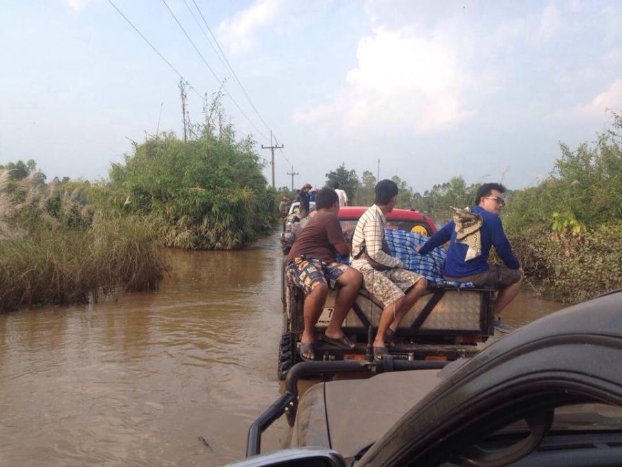 เจ้าหน้าที่บอกว่าน้ำสูงระดับอก พระท่านก็เคร่ง ไม่ยอมออกมาจากสำนัก เราตัดสินใจส่งตัวแทนเข้าประกวดสามคันครับ อันตรายเกินหากเข้าหมดทีม คันแรกส่งยาง 40 นิ้ว ของเจ้าสำนักไปชิงรางก่อน