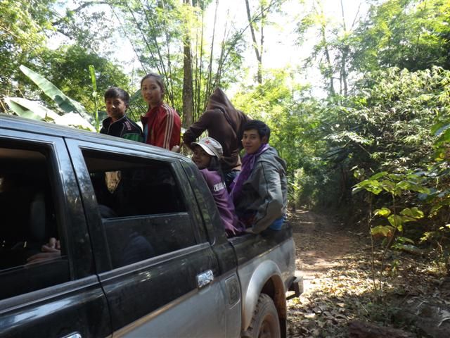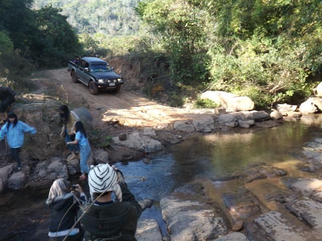 ตอนกลับลงมาเป็นทางลงเนินชันแทบตลอดเส้นทางเลยไม่มีโอกาสถ่ายรูปแถมยังต้องทำเวลาให้ไปให้ถึง ร.ร. ก่อนมืดอีกมาได้หยุดกันอีกทีก็ตรงลำห้วยสายเดิมพอมาถึงคันแรกก็รีบข้ามไปเลยไม่รอช้า