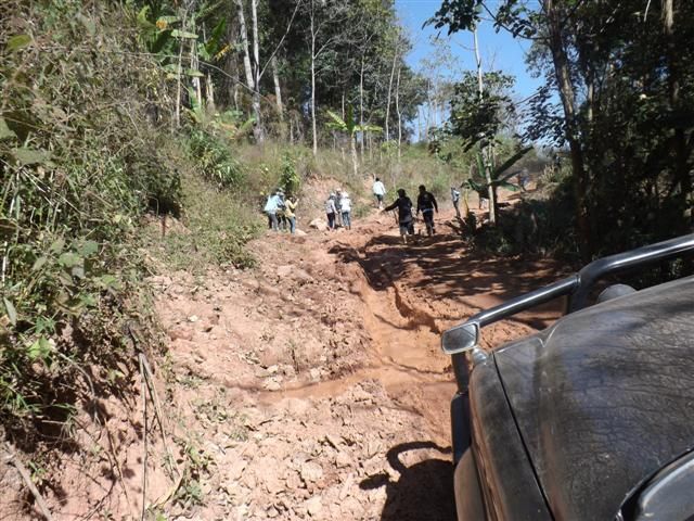 น่าเสียดายไม่มีภาพตรงฝั่งเหวเพราะไม่มีใครกล้าไปอยู่ฝั่งนั้นพอคันสุดท้ายผ่านมาได้ทุกคนก็รีบขึ้นรถคันที่จอดรออยู่ก่อนแล้วเพื่อเดินทางต่อพอผ่านจุดนี้ไปได้ก็ไม่มีอะไรต้องเป็นห่วงเพราะมีแต่ขึ้นเนินอย่างเดียวแล้ว ที่น่าเป็นห่วงก็มีแต่รถเรานี่แหละคลัชไหม้ตั้งแต่เมื่อวานเลยไม่ค่อยมีแรงส่งขึ้นเนินสักเท่าไหร่
