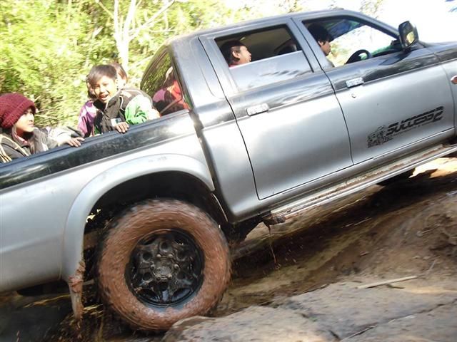บ่อโคลนตรงจุดนี้ก็ค่อนข้างลึกใช้ได้เลยทันทีที่ล้อลงบ่อไปรถเอียงจนผูโดยสารด้านหลังรถกรี๊ดกันหมดแถมฝั่งขวาที่เป็นเหวทางพังลงไปอีกนิดหน่อยเหลือระยะห่างจากล้อขวาถึงเหวไม่น่าจะถึงเมตรด้วย
