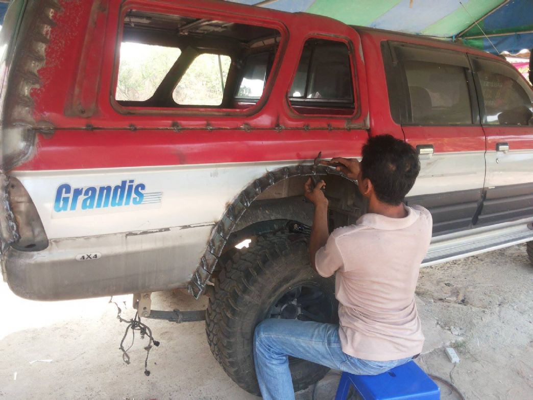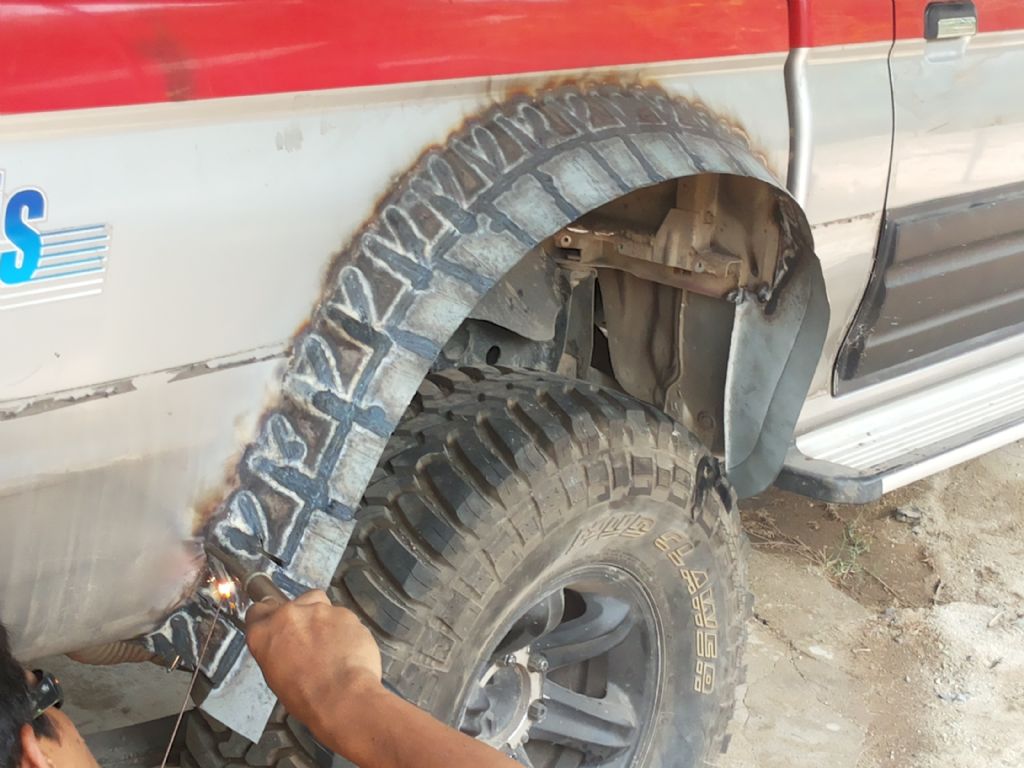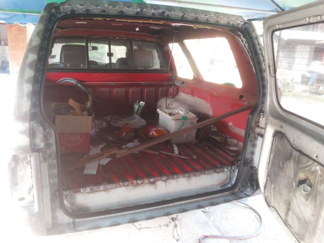 ผมคงโดนตั้งคำถามถึงความคุ้มค่า ว่าทำไมไม่ขายรถคันนี้แล้วออก G wagon ถ้าต้องการใช้งานพื้นที่แบบแวน แต่เชื่อว่าหลายคนคงรู้สึกแบบเดียวกับผมรถคันที่เราเคยไปไหนไปกัน ขึ้นเขาลงห้วย ร่วมทุกข์สุขกันมาตลอด แม้มันจะกินจุ ค่าดูแลก็เอาเรื่องอยู่ แต่ผมตัดใจขายไม่ลง เลยผุดโปรเจคปรับใหญ่ เพื่อใช้งานไปนานๆโดยความหล่อไม่น้อยหน้ารุ่นใหม่ๆที่ออกมากัน เริ่มจากฝาท้ายบ้านผมอยู่กันหลายคน ใน1ปีมีอยู่อย่างน้อยครั้งๆสองครั้งที่ครอบครัวจะออกไปพักผ่อนต่างจังหวัด ปัญหาคือขบวนผู้สูงอายุบางส่วนที่ต้องนั่งหลังปีนขึ้นหลังกระบะไม่ได้เพราะฝาท้ายบังกันชนเลยไม่มีที่เหยียบขึ้น บานท้ายปาเจโร่โชกุน เป็นเป้าหมายที่ผมเลือก เอามาเจอกับหลังคาเหล็กเดิมของสามมิตร