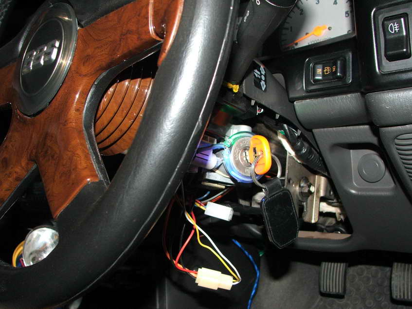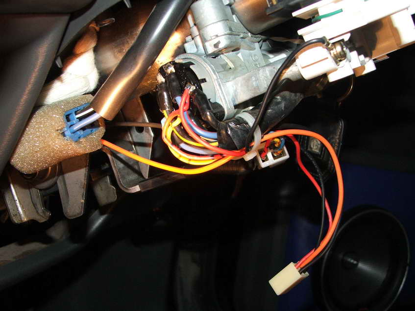 1.หาสายไฟที่ต่อกับ สวิทประตูให้ได้ซ่ะก่อนเพราะเราต้องโยงสายจาก คอพวงมาลัยมาหามัน เอาจุดที่ไกล้ที่สุดหละกัน สาเหตุที่ต้องหา ก็เพราะว่า เราจะให้มันติดก็ต่อเมื่อเราเปิด ประตูรถเท่านั้น ซึ่งสวิทประตู จะเอาไฟลงตัวถังหรือ กราวน์นั่นเอง