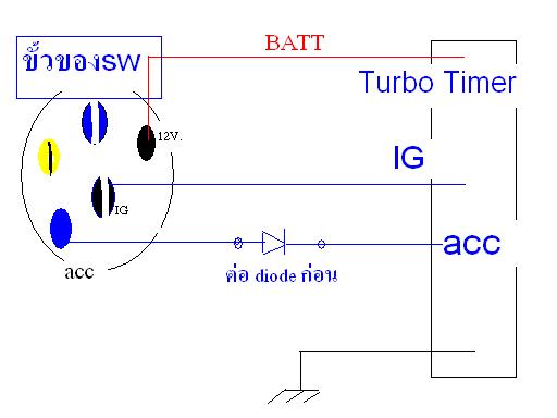 2 ให้นำเอา Diode เบอร์อะไรก็ได้ มาต่อคั่นระหว่างสาย acc ของ timerกับขั้ว 6 ของswกุญแจ เพื่อกั้นไม่ให้ ไฟ12vจาก timer มาเข้าระบบของรถยนต์