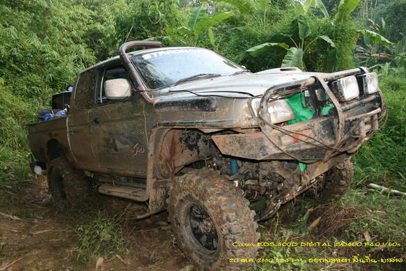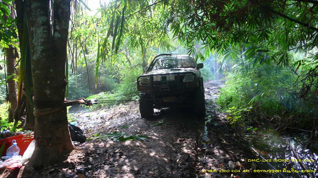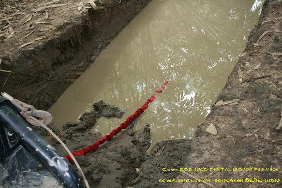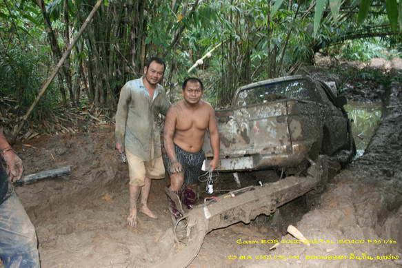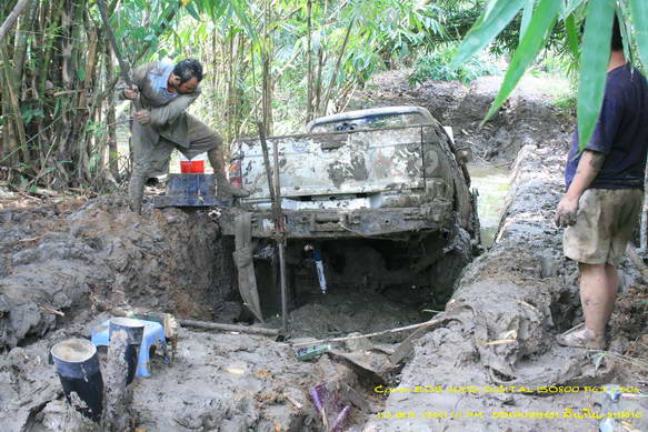 ต้องสร้างทางด้วยการถมหินให้ระดับสูงพอไม่ติดกระโปกหลัง แล้วลองดึงไกลแต่แรงและมุมไม่พอ