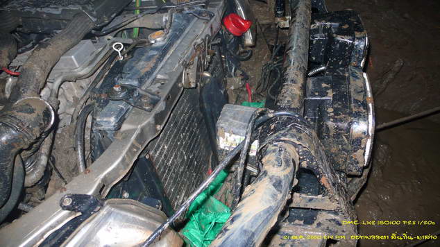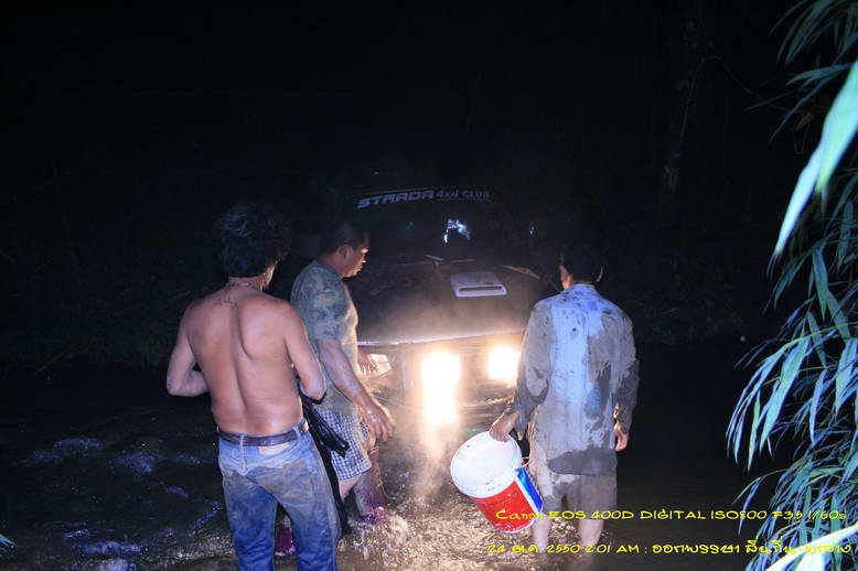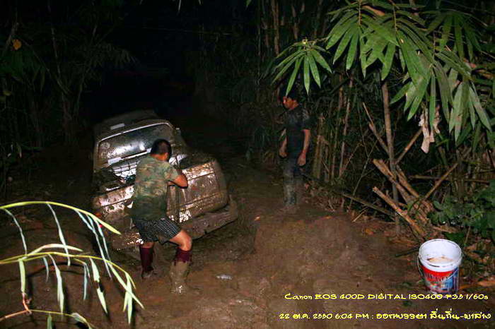 เปลี่ยนแบตลูกเก่าที่ถอดเป็นอะไหล่มาเปลี่ยน สตาร์ทช่วยปั่น ใช้เวลา จนมืด ประมาณสองทุ่ม ดึงพ้นหลุม