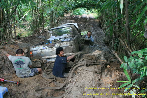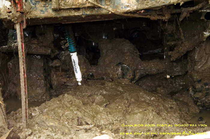 ที่ไหนได้ โคลนมันดันจากล่างสุด มาดัน สายพานหลดหมดทุกเส้นเลย ร้อนนะซิ ต้องสาดน้ำ