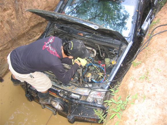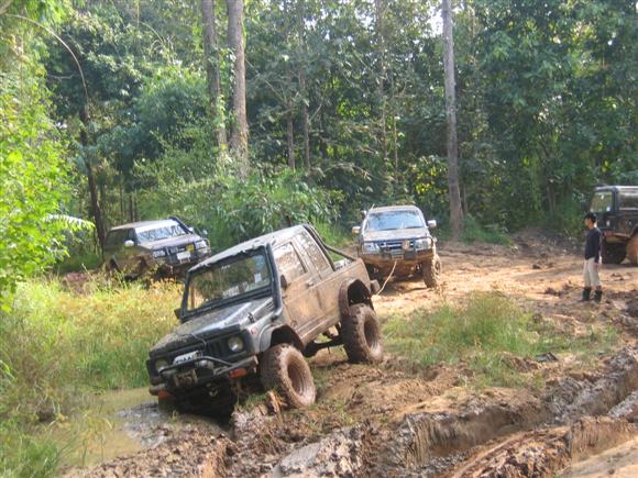 คำตอบที่ 71 เลยพักทานข้าวกลางวันก่อนแล้วค่อยว่ากัน......หลังจากทานข้าวเสร็จก็ปรึกษากันว่าคงเข้าไม่ได้แล้ว รถเสียหายหลายคัน....สีทองต้องเชือมอาร์มหน้า นิคมเพลาขาด หันหัวกลับ.....ดีกว่าน่ะ ไปหาที่นอนข้างนอก ชุดนี้ของคุณโอ่งและเชษฐ์มากัน 4 คัน เข้าไปต่อ
