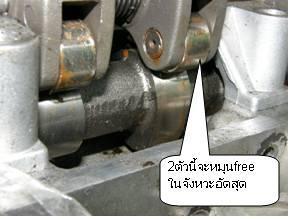 4.ลองขยับกระเดืองกดvalve ดูถ้าขยับได้ทั้งvalveไอดีไอเสีย และmark ตรง แสดงว่าสูบ1อยู่ที่จังหวะอัด