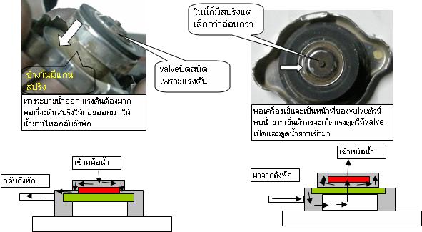 คำตอบที่ 24 ลองนึกดูหลักการทำงานดีๆครับ ว่าวาล์วน้ำไม่ทำให้ท่อยางเกิดการบีบตัวได้เลย เพราะถ้าวาล์วน้ำเสียกรณีวาล์วน้ำไม่เปิดเครื่องคุณ ก็ฮีตไปแล้วครับ หรือกรณีวาล์วน้ำเปิดตลอดก็ไม่สามารถให้ให้เกิด vaccum ในระบบได้ เพราะนึกถึงรถสมัยก่อนไม่มีวาล์วน้ำท่อยางก็ไม่บี้แบนถูกมะครับ คราวนี้มานึกถึงฝาหม้อน้ำครับ ฝาหม้อน้ำ ไม่ได้ทำหน้าที่ปิดไม่ให้น้ำออกอย่างเดียว แต่ทำหน้าที่ระบายแรงดัน น้ำกลับถังพัก หรือเติมน้ำเข้าหม้อน้ำโดยใช้ vaccum นี้แหละครับในการดูดน้ำเข้าหม้อน้ำ กรณีที่ฝาหม้อน้ำเสียหรือแรงดันรั่วก็ จะทำให้ท่อยางหม้อน้ำบี้แบนครับ