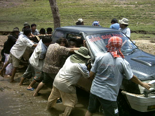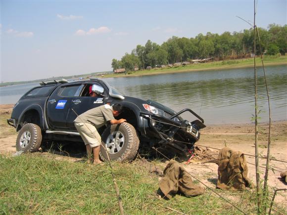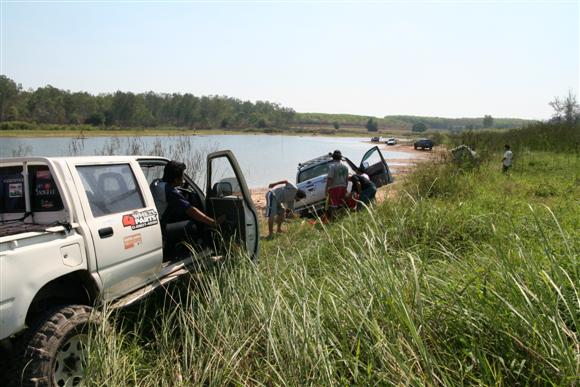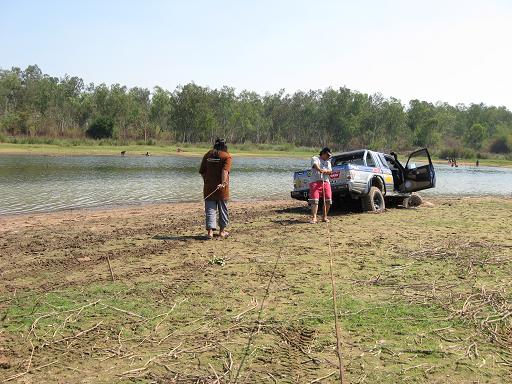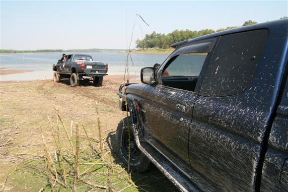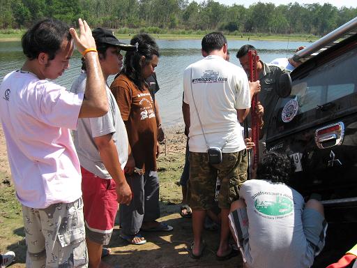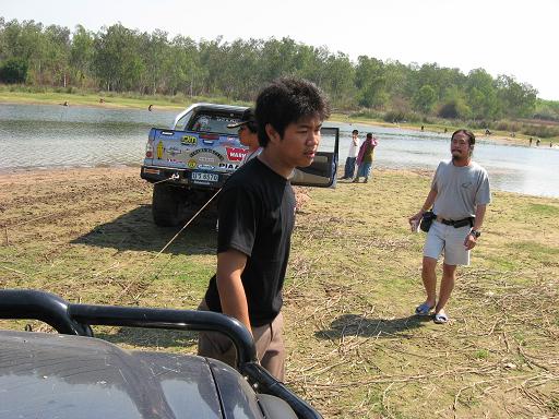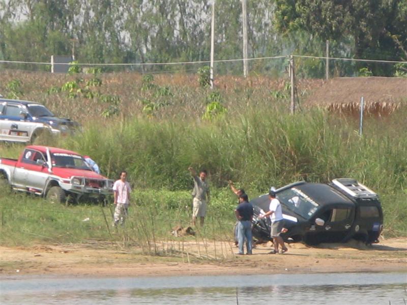 เรื่องของเรื่องก็มีอยู่ว่า เราก็แค่จะมาเก็บสัมภาระ และเลื่อนรถกันจากตรงที่นอนกันริมน้ำ เพื่อที่จะมาจอดด้านบน เพื่อมานั่งสังสรรค์กันต่อ แต่ก็อีกล่ะครับ ครั้นจะให้เลื่อนแล้ววิ่งตรงขึ้นมาเลยมันก็ยังไงอยู่ มีทั้งเทพ มีทั้งมาร ก็เลยเกิดการยุกันขึ้น ให้วิ่งเลาะริมน้ำไป แล้วไปขึ้นอีกจุดหนึ่ง ไหนๆก็ไหนๆ ก็เอาซ่ะหน่อย....