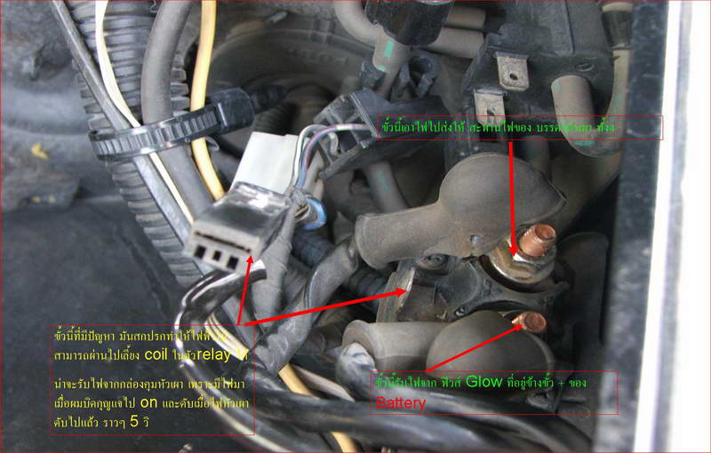 มาเช้าอีกวัน เพิ่งสังเกตุ ว่าพอบิดกุญแจไป 0n แล้วไฟหัวเผาไม่ติดแฮะ บิดกลับไปมาอย่างไรก็ไม่ติด แต่พอเราสตาร์ท มันจะติดมาแว้บๆ เท่านั้น และก็ได้เรื่อง ต้อง 4 ครั้งถึงติดได้ แถมควันขาวอีกหน่อยๆที่ท้ายรถ