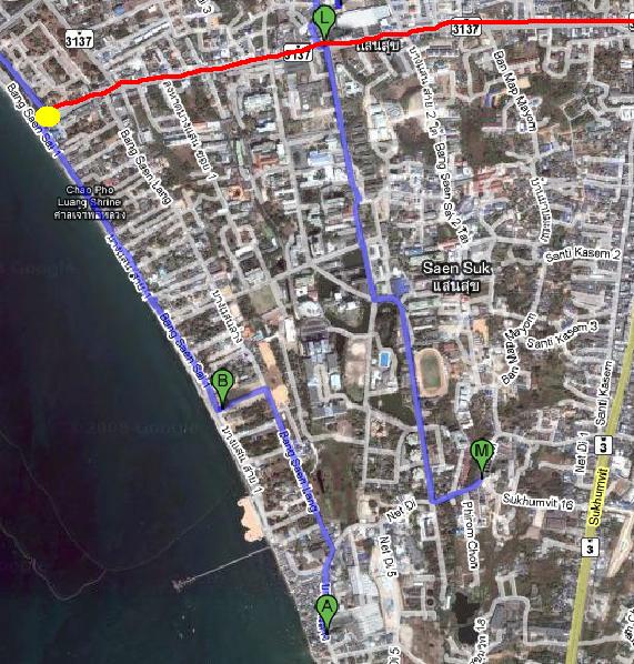 เมื่อมาจากทางวงเวียนบางแสนจะมีถนนที่เป็นอิฐตัวหนอน