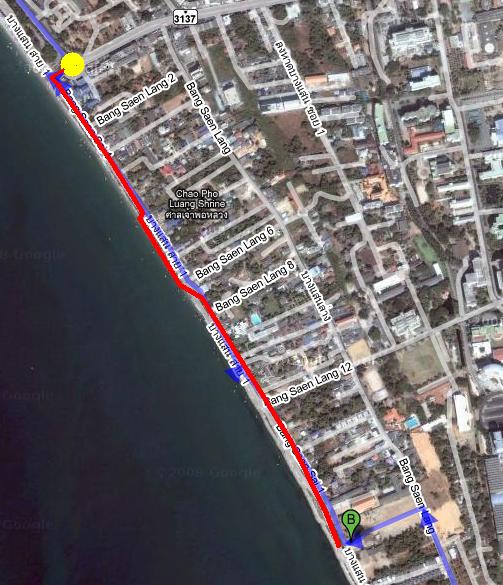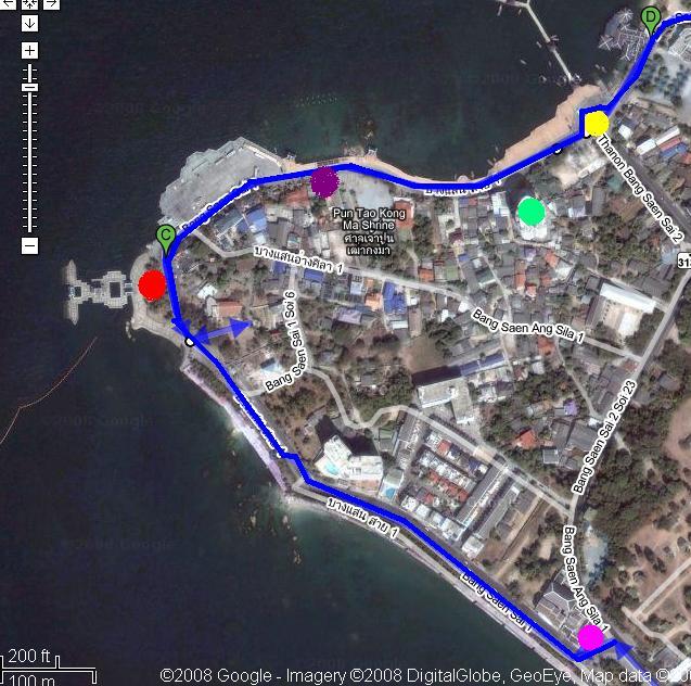 ตามเส้นทางสีแดงจุดสังเกตุพอเลยศาลเจ้าด้านซ้ายมือ แล้วผ่านโรงงานน้ำปลาพิชัย
